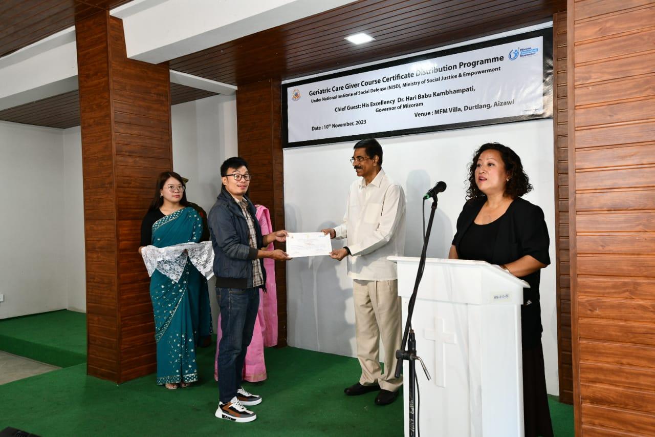 Governor Dr Hari Babu Kambhampati graced the graduation ceremony of Geriatric Caregivers of Mission Foundation Movement, Durtlang as the Chief Guest at the MFM Villa, Durtlang, today. In this function, the first batch of 25 graduates who had done 3 months of courses were handed certificates.