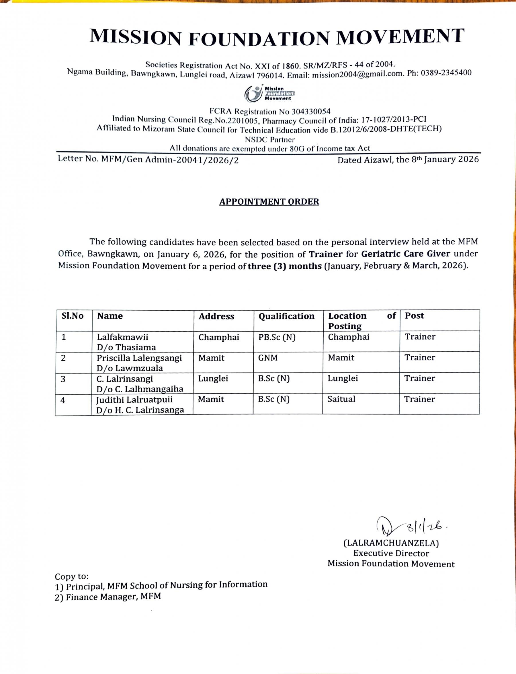 Results of the interview conducted on 7th January 2026 for the post of Geriatric Care Trainer at various Districts