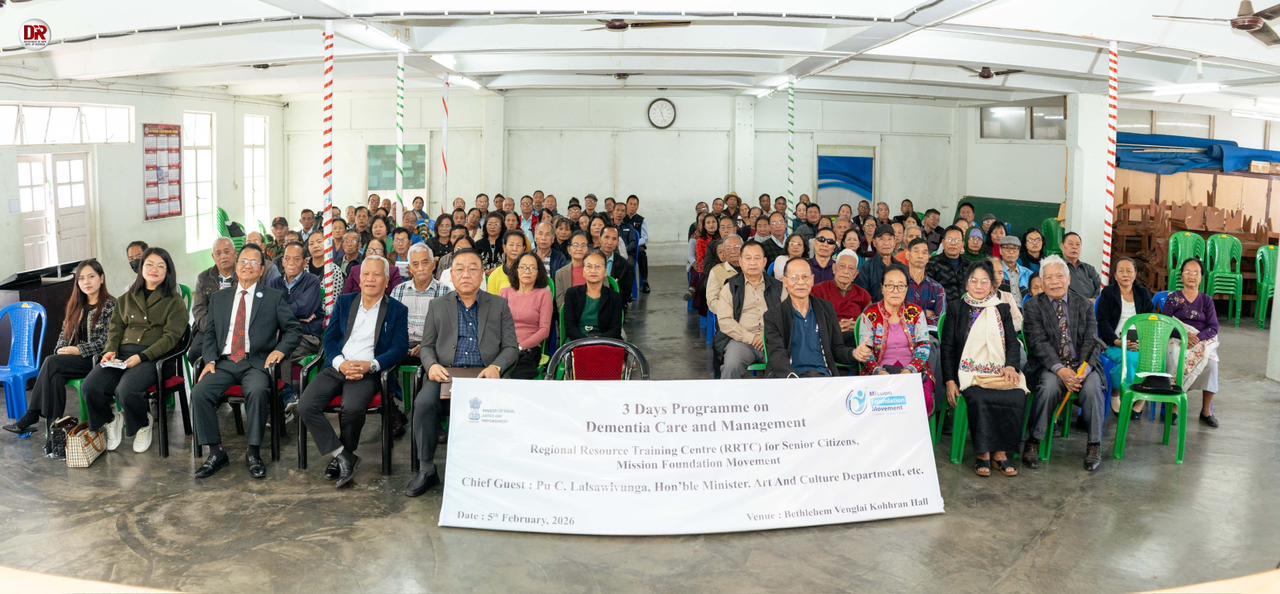 The Regional Resource Training Centre (RRTC) for Senior Citizens, under MFM, organized a “Dementia Care and Management” programme for senior citizens at the Bethlehem Venglai Presbyterian Church Hall, Bethlehem Vengthlang, Aizawl. The programme was attended by MUP members from Bethlehem Area, College Veng, and ITI, with Pu C. Lalsawivunga, Hon’ble Minister, Art & Culture Department, gracing the occasion as the Chief Guest.