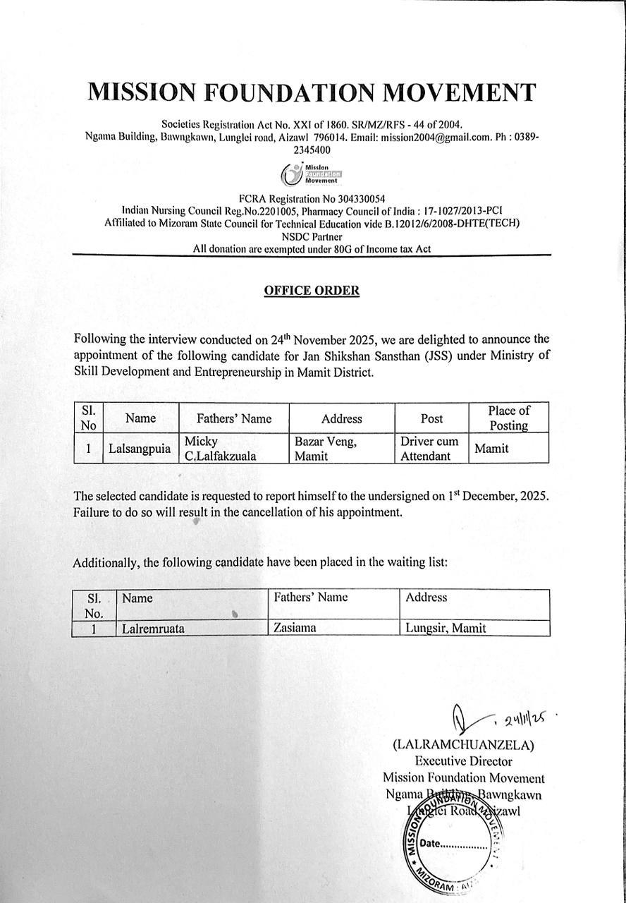 Laithangpuii College of Pharmacy Interview Results, 2023