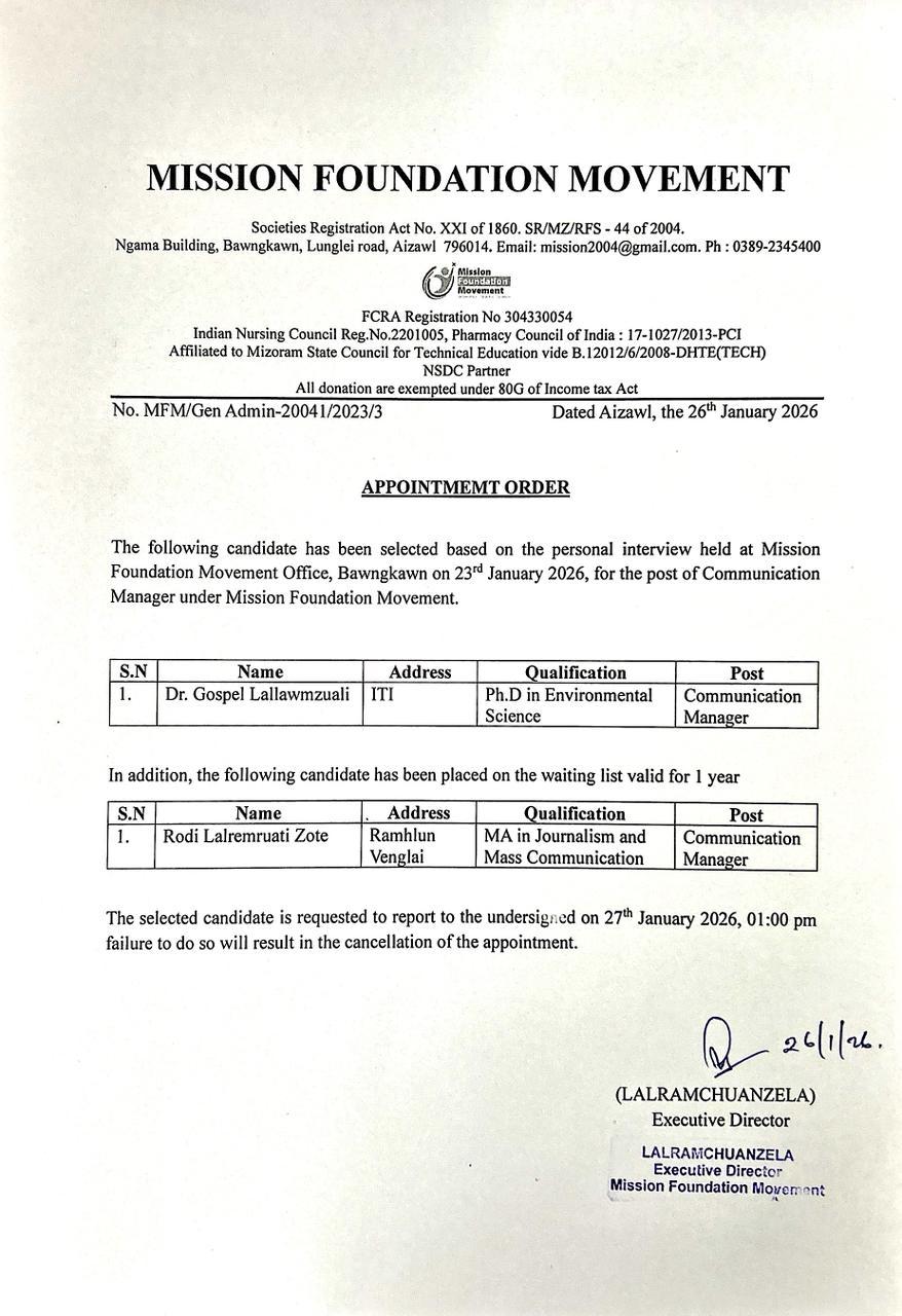 Laithangpuii College of Pharmacy Interview Results, 2023